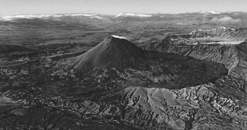 Вулканы. Вулканическое сооружение, сопровождаемое кальдерой (Карымская Сопка, Камчатка).
